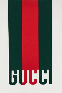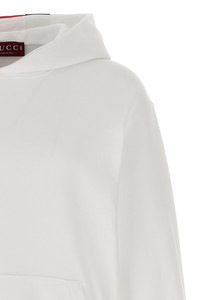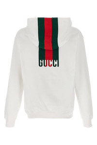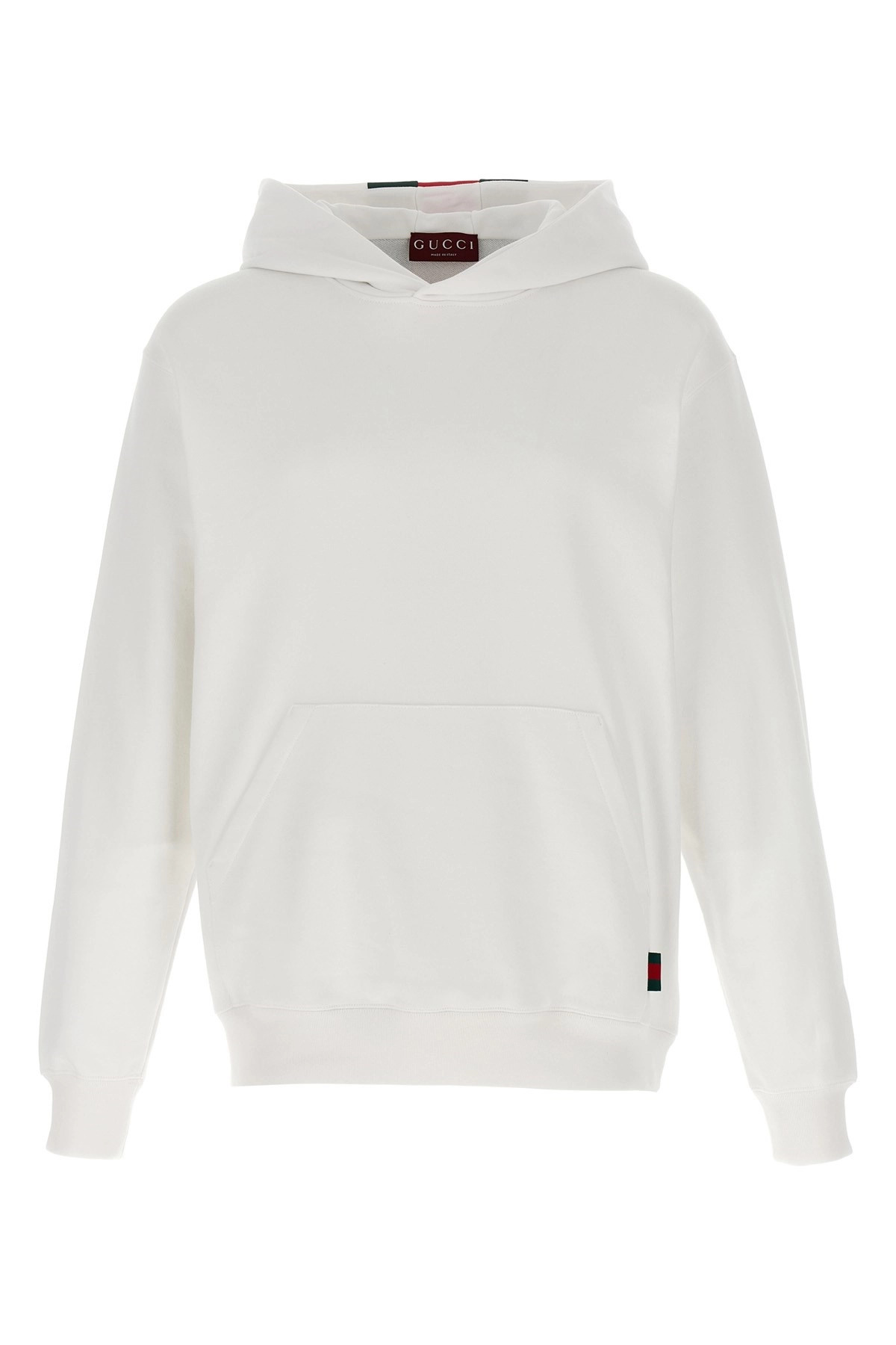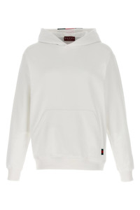 cod. 814900XJG2U9074 Brushed cotton hoodie with kangaroo pocket, long cuffed sleeves and dropped shoulders, and Nastro Web print on the back. Color: White Size & Fit: true to size fit Composition: 100% cotton Made in: Italy