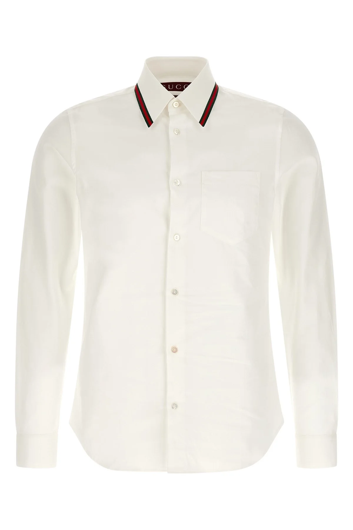 cod. 814560Z7AVS9000 Oxford cotton shirt with pointed collar with 'Nastro Web' piping, breast pocket, front button closure, long cuffed sleeves. Color: White Size & Fit: true to size fit - COLLAR size Composition: 99% cotton, 1% polyester Made in: Italy