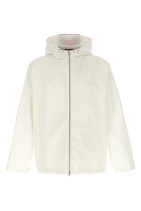 cod. 804962ZAIAK9174 Water-repellent cotton jacket with drawstring hood, tone-on-tone logo patch on the front, pockets, long sleeves, drawstring at the hem, print Back Web tape. Color: White Size & Fit: true to size fit Composition: 100% cotton Made in: Italy