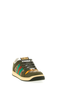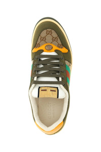 cod. 838984HVKI09750 'Screener' sneakers in solid color smooth leather and Original GG fabric, side Web ribbon, enamelled oval detail with double G in front metal, contrasting heel with embossed logo, vintage Gucci logo label, two-tone rubber sole, lace-up closure. Color: Multicolor Size & Fit: UK MEN Composition: 65% polyester 18% cotton 17% polyamide Made in: Italy