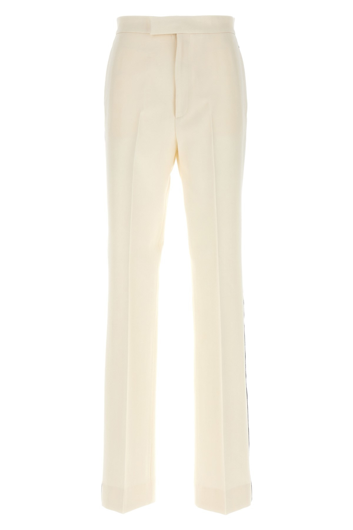 cod. 751329ZANSG9037 Wool pants with contrasting side bands, zipper, hook and button closure, pockets. Color: White/Black Size & Fit: true to size fit Composition: 100% wool