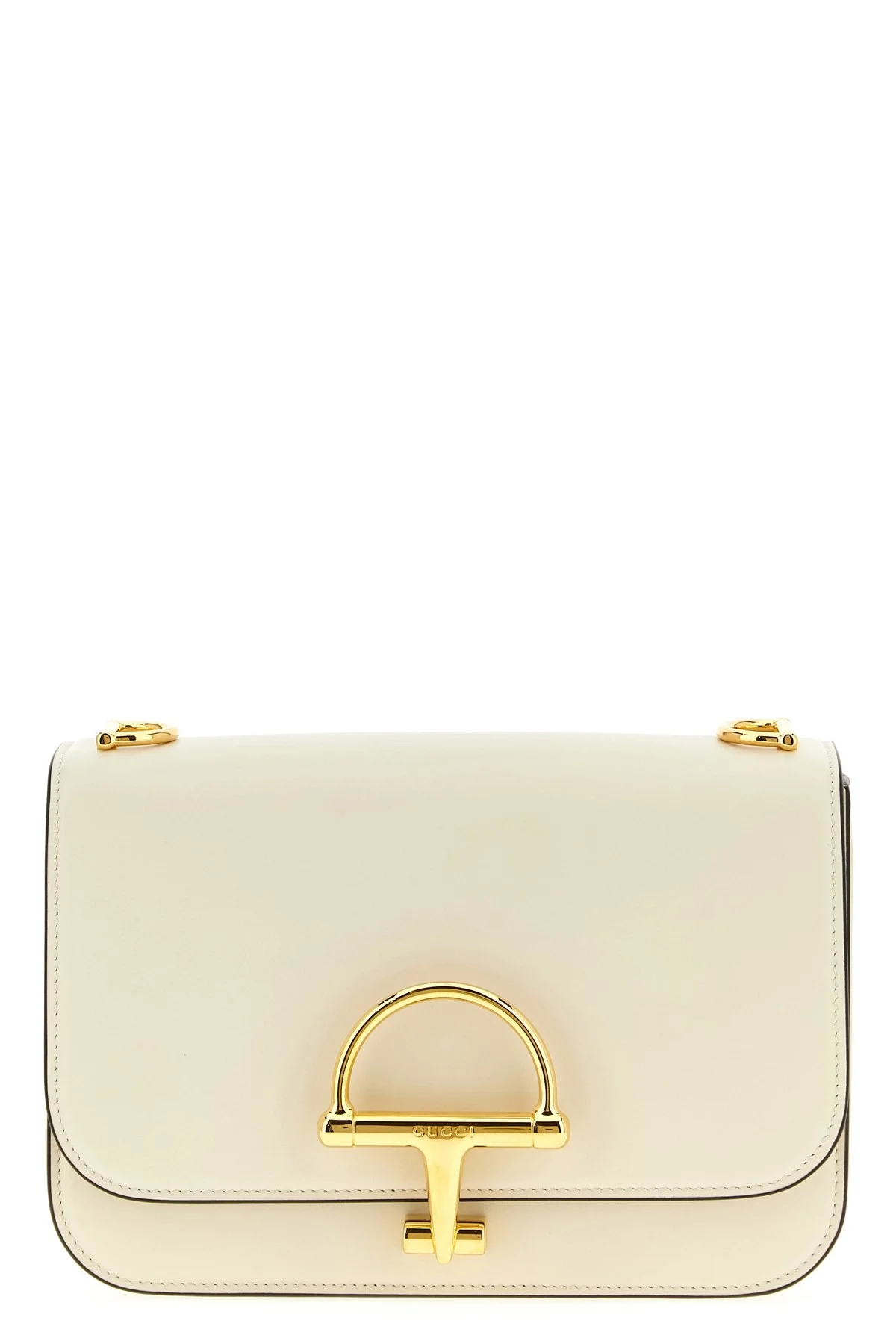 cod. 846705AAFKB9540 'Siena' smooth leather crossbody bag, flap with snap closure with metal half-horsebit detail, gusset model, adjustable shoulder strap. Color: White Size & Fit: W 22.5 x H 14 x D 7 cm Composition: 100% calfskin leather (Bos Taurus) Made in: Italy