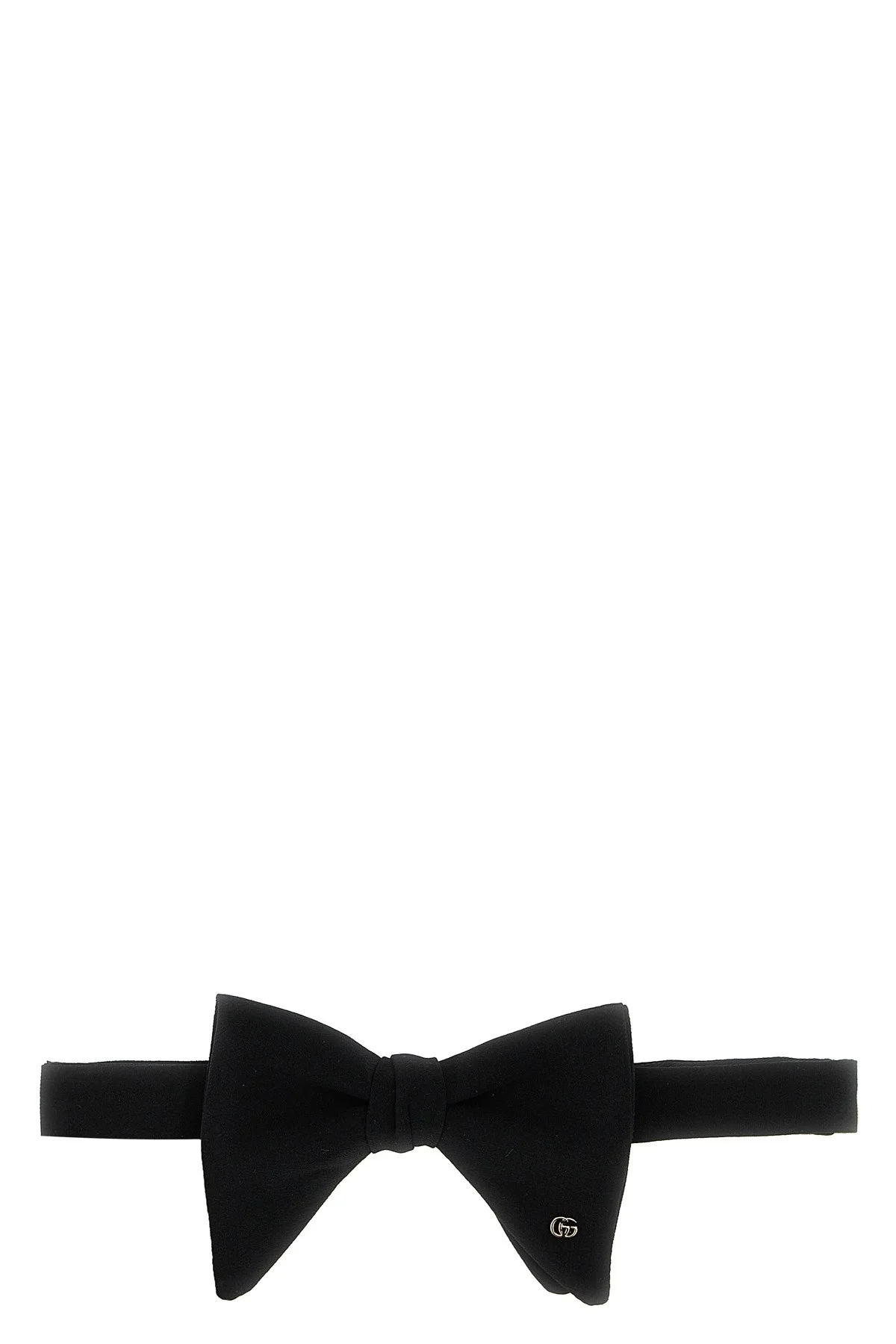 cod. 6600794G0051000 Silk crepe bow tie with logo detail. Color: Black Size & Fit: 11 x 7 cm Composition: 100% silk