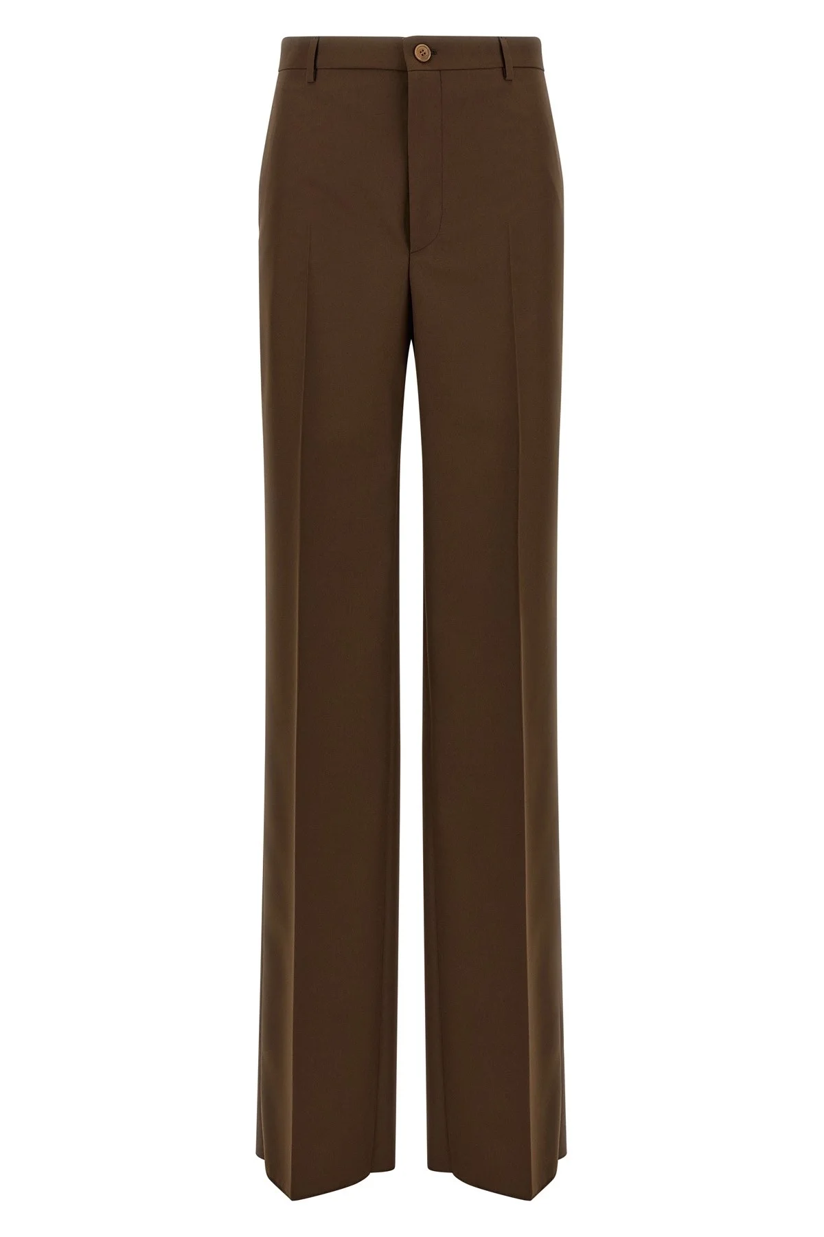 cod. 845357ZAFKB2046 Tailored trousers, masculine model, middle waist with wide straight leg, front stretched pleat, pockets, zip and button closure. Color: Brown Size & Fit: True to size fit Composition: 100% polyester Made in: Italy
