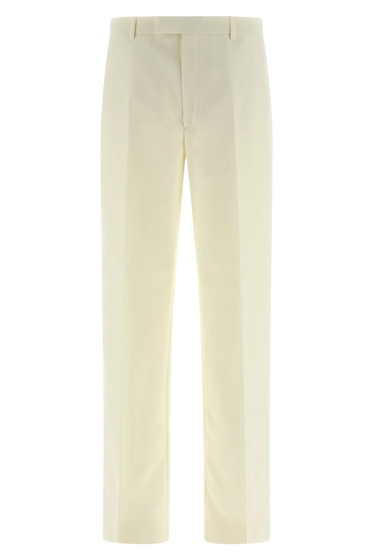 cod. 850090Z7AYA9001 Technical Panama trousers, tailored cut, stretched pleat, hook and front button zip closure, pockets, straight leg, tone-on-tone logo embroidery on the back. Color: White Size & Fit: true to size fit Composition: 100% polyester Made in: Italy