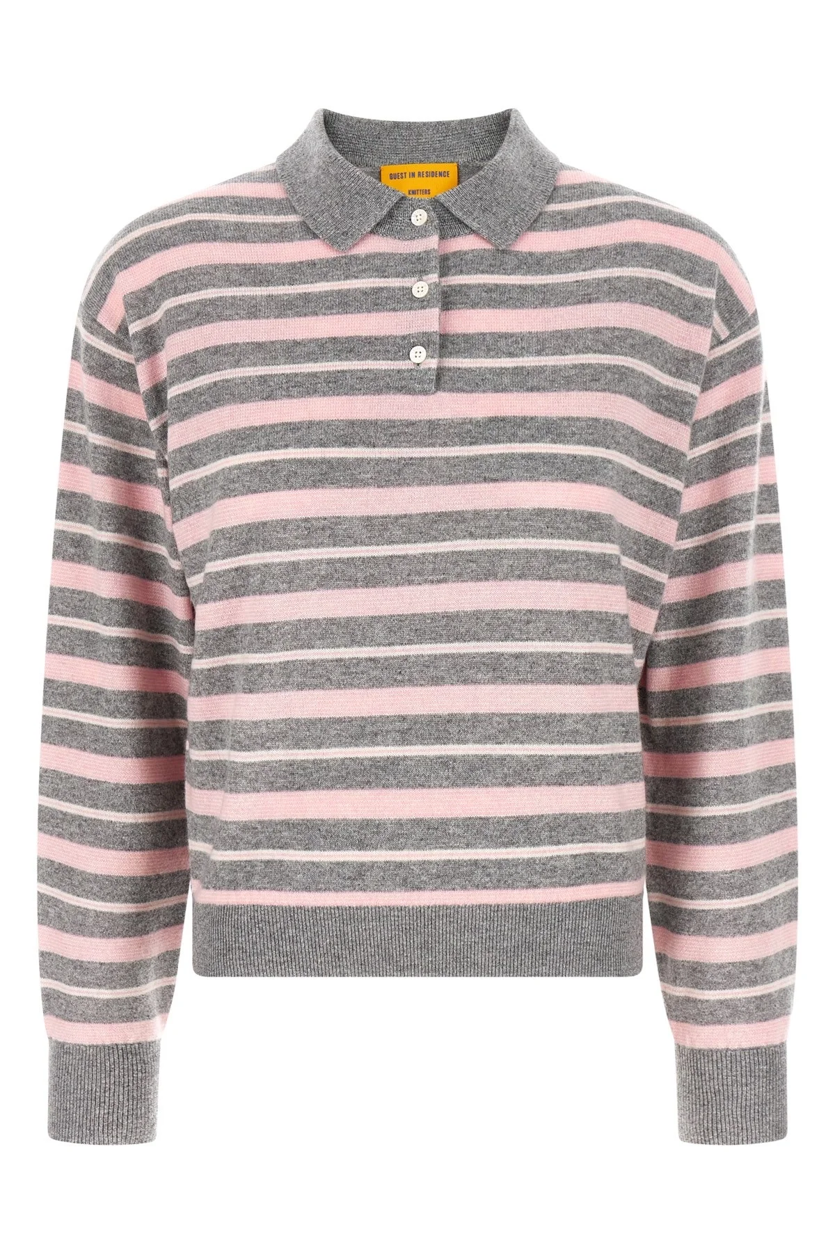 cod. W38510JLHEATHERGREYCOMBO 'Collegiate Stripe' polo style sweater with collar and front closure, 3 buttons, striped pattern, long sleeves with cuffs. Color: Multicolor Size & Fit: True to size fit Composition: 100% cashmere Made in: China