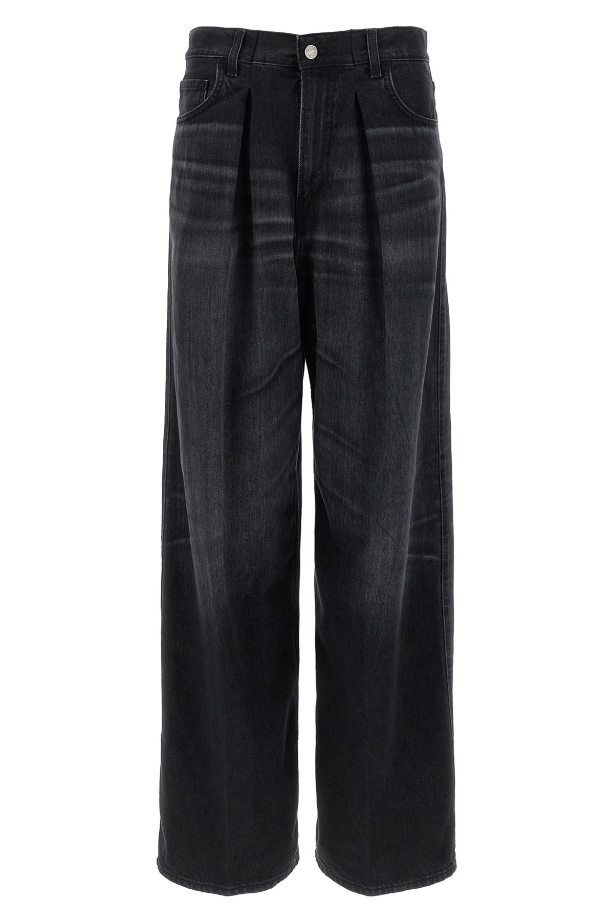 cod. HEW03340DF173L0854L0854 'Candy Black Tencel' jeans in delave cotton denim with front pin tucks, wide leg, zip and button closure, back logo tag Color: Black Size & Fit: True to size fit Composition: 82% cotton, 18% lyocell Made in: Italy