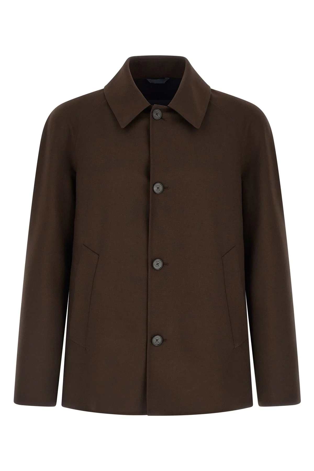 cod. GC000103U12861S8892 Cool wool jacket with shirt collar, flared silhouette, front button closure, pockets, long sleeves, unlined. Color: Brown Size & Fit: true to size fit Composition: 63% polyester 30% wool 5% elastane 2% af Made in: Italy