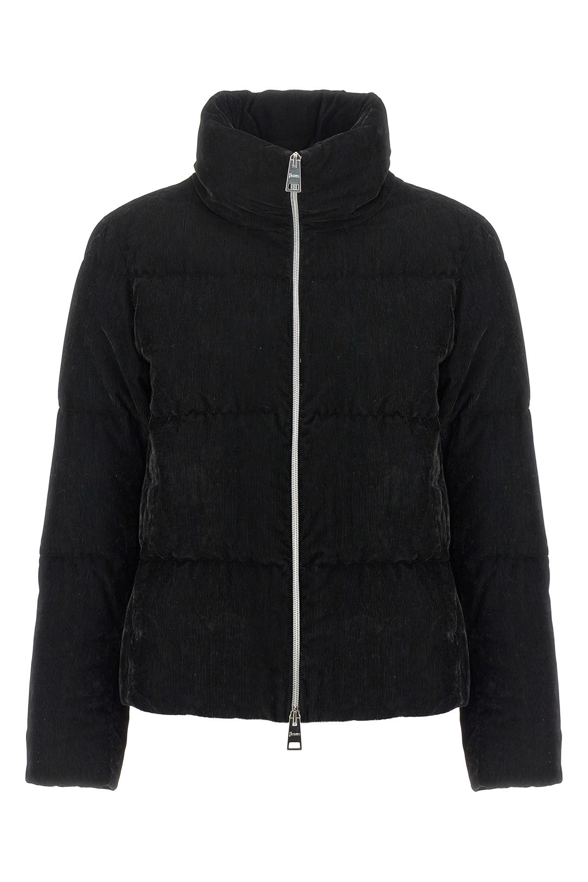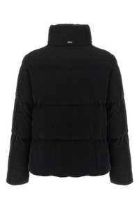 cod. PI00158DR127289300 'Resort - Bright Corduroy' corduroy bomber jacket made of viscose blend and padded quilted lurex, standing collar, front zip closure, pockets, long sleeves, drawstring at the hem. Color: Black Size & Fit: Boxy fit Composition: 76% viscose 16% polyester 8% mz Made in: Romania