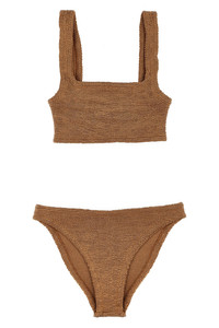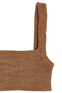cod. XANDRABIKINIMETALLICCOCOA 'Xandra' bikini in The Original Crinkle™ fabric consisting of a sporty top with square neckline, maximum breast support and classic briefs. Color: Brown Size & Fit: One size Composition: 97% polyamide 3% elastane Made in: Morocco