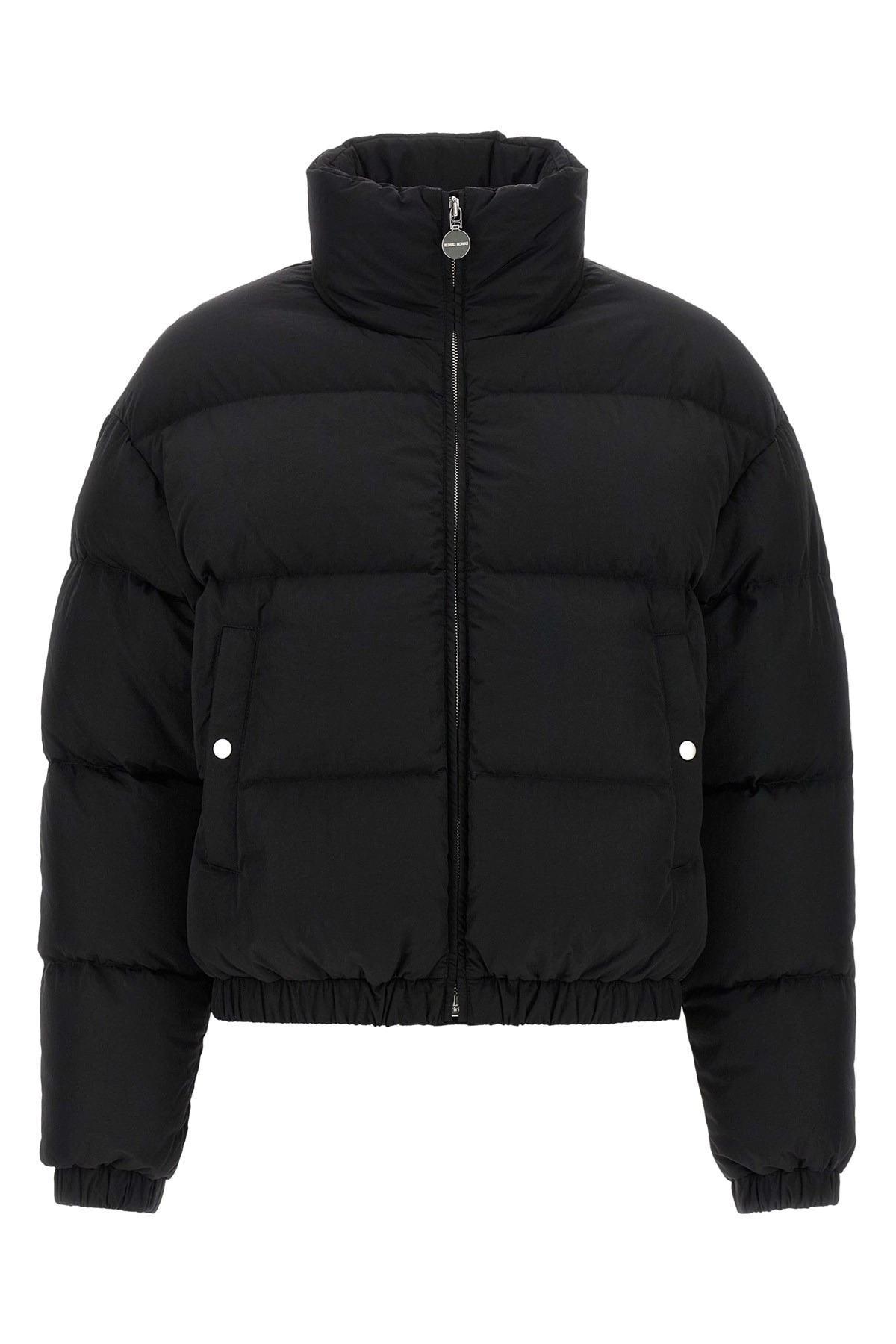 cod. COOLJACKETENNIONYLONENNIOBLACK 'Cool' quilted water-repellent nylon jacket with goose down padding, slightly cropped model, standing collar, front zip closure, pockets, long sleeves with elastic cuffs and dropped shoulder, elastic at the hem. Color: Black Size & Fit: true to size fit Composition: 100% nylon Made in: Ukraine