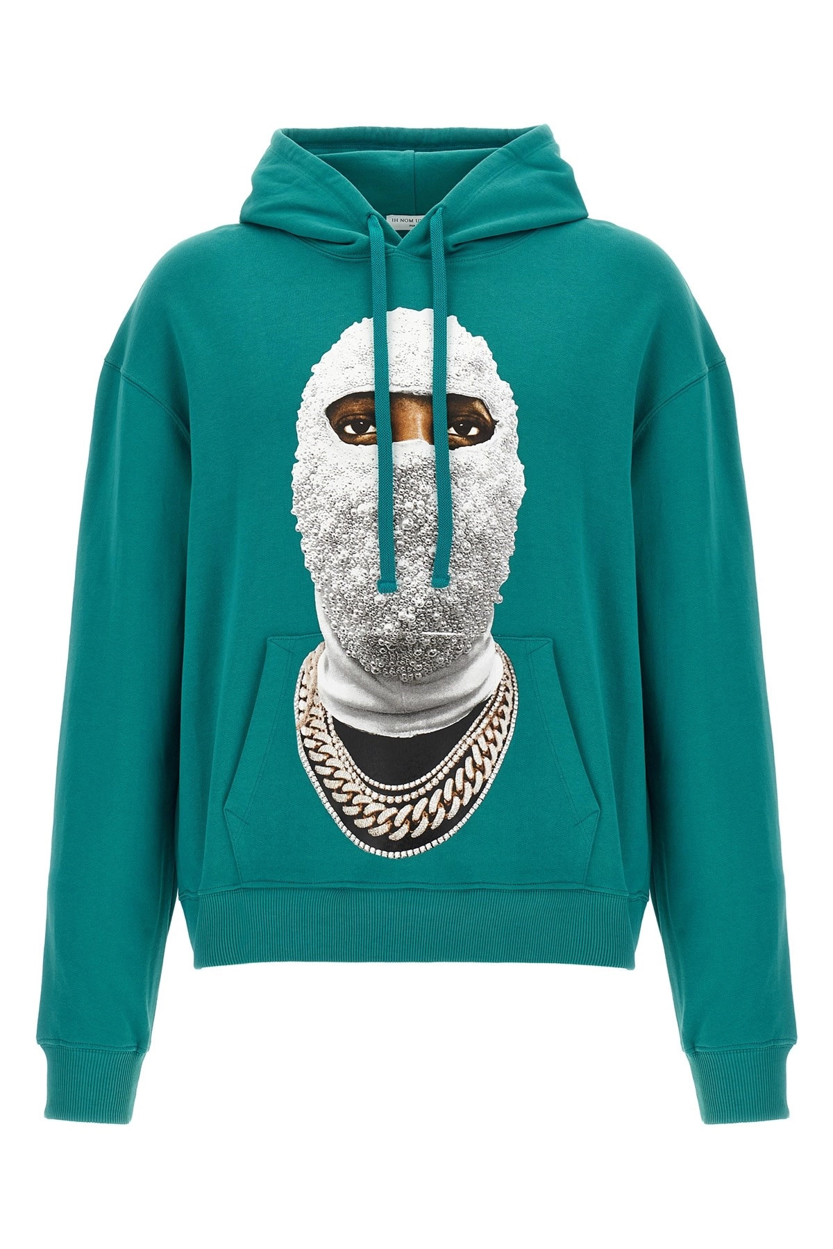 cod. NUS22293158 'Future' brushed cotton hoodie with front and back print, crew neck, long cuffed sleeves and dropped shoulders. Color: Green Size & Fit: Comfort fit Composition: 100% cotton Made in: Italy