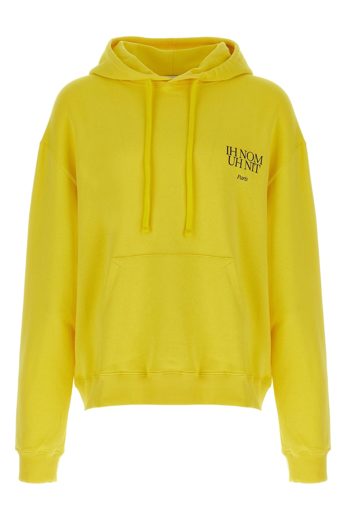 cod. NUS22236079 'Mask' gauze cotton hoodie with front and back print, crew neck, kangaroo pocket, long cuffed sleeves and dropped shoulders. Color: Yellow Size & Fit: Comfort fit Composition: 100% cotton Made in: Italy