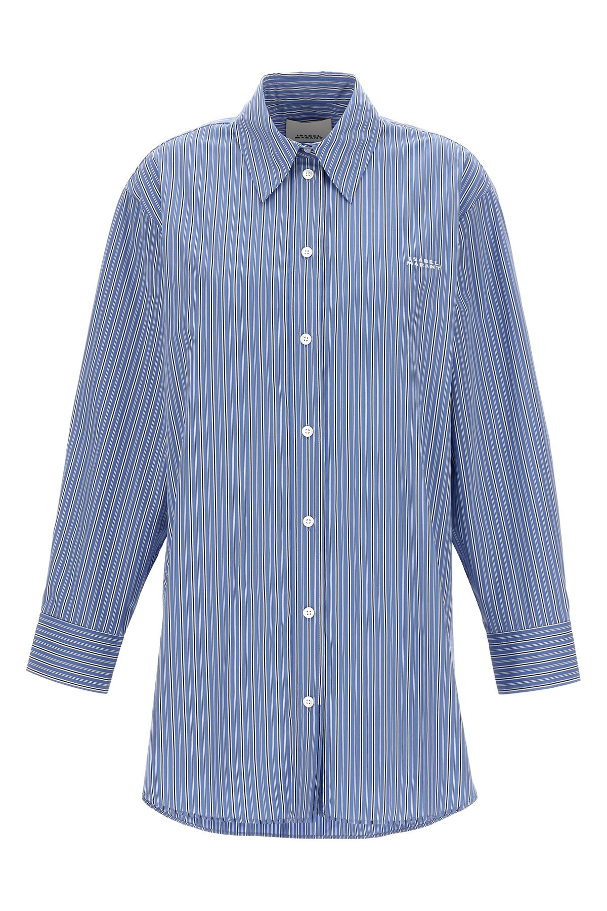 cod. 24PCH0119FAB1I01I30BU 'Cylvany' striped cotton shirt with front logo embroidery, button closure, long cuffed sleeves. Color: Light Blue Size & Fit: Comfort fit French size Composition: 100% cotton Made in: Madagascar