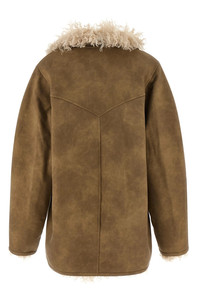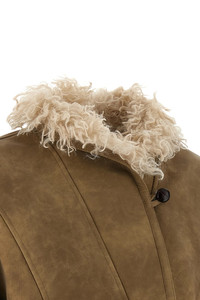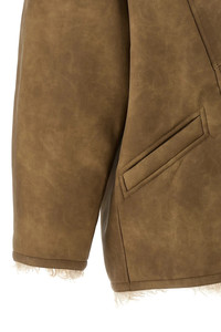 cod. MA0427FAC3A01E50TA 'Clea' suede effect fabric jacket with shearling-effect fabric lining, shawl collar, front button closure, pockets, long sleeves with dropped shoulders. Color: Beige Size & Fit: oversize fit - FRENCH size Composition: 100% polyurethane Made in: India
