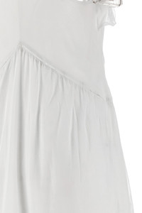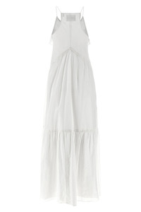 cod. RO1003FBB3J04E20WH Long 'Vasma' dress in cotton voile with column point details, flared silhouette, front V-neck with crochet-finish ruffles, back American neckline, asymmetrical hem, lining. SUSTAINABLE: This product is made with organic cotton. Color: White Size & Fit: true to size fit - FRENCH size Composition: 80% cotton 20% viscose Made in: India
