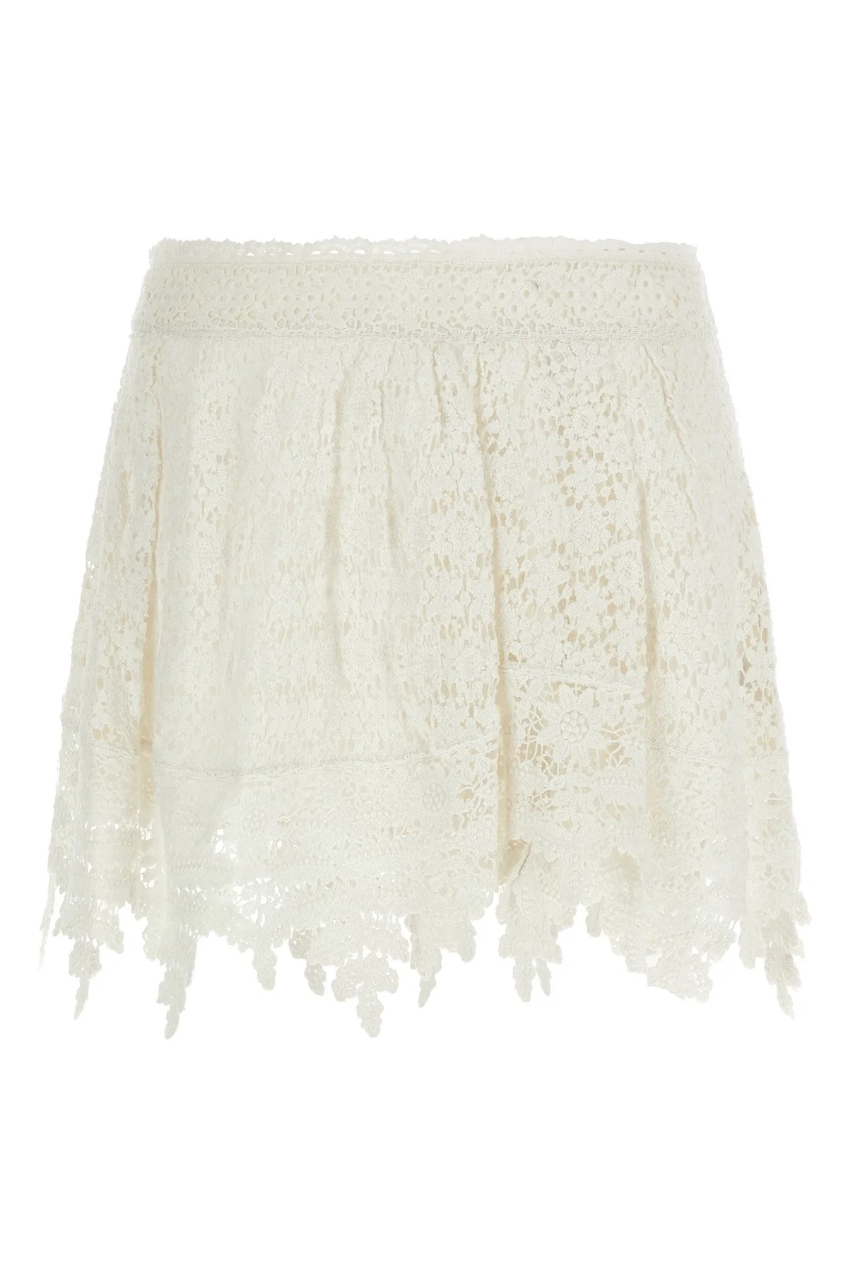 cod. JU0453FAD1J02I20WH Mini 'Hanta' crochet cotton skirt, pince, side zip closure, underskirt, asymmetrical hem. Color: White Size & Fit: true to size fit - FRENCH size Composition: 100% cotton Made in: India