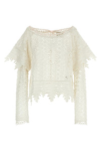cod. HT0807FAD1J02I20WH 'Hyliana' cotton crochet sweater I don't see, wide round neckline with contrast lace and back button closure, long and short overlapping double layer sleeves, asymmetrical hem. Color: White Size & Fit: true to size fit - FRENCH size Composition: 100% cotton Made in: India