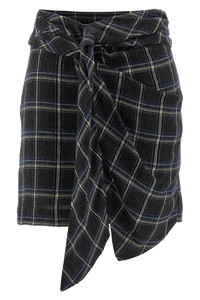 cod. JU0455FAC4J01I30BU Mini 'Kimia' skirt in tartan cotton blend jacquard, draped at the waist with ruffles, side closure with zip and hook. Color: Blue Size & Fit: True to size fit French sizing Made in: Tunisia