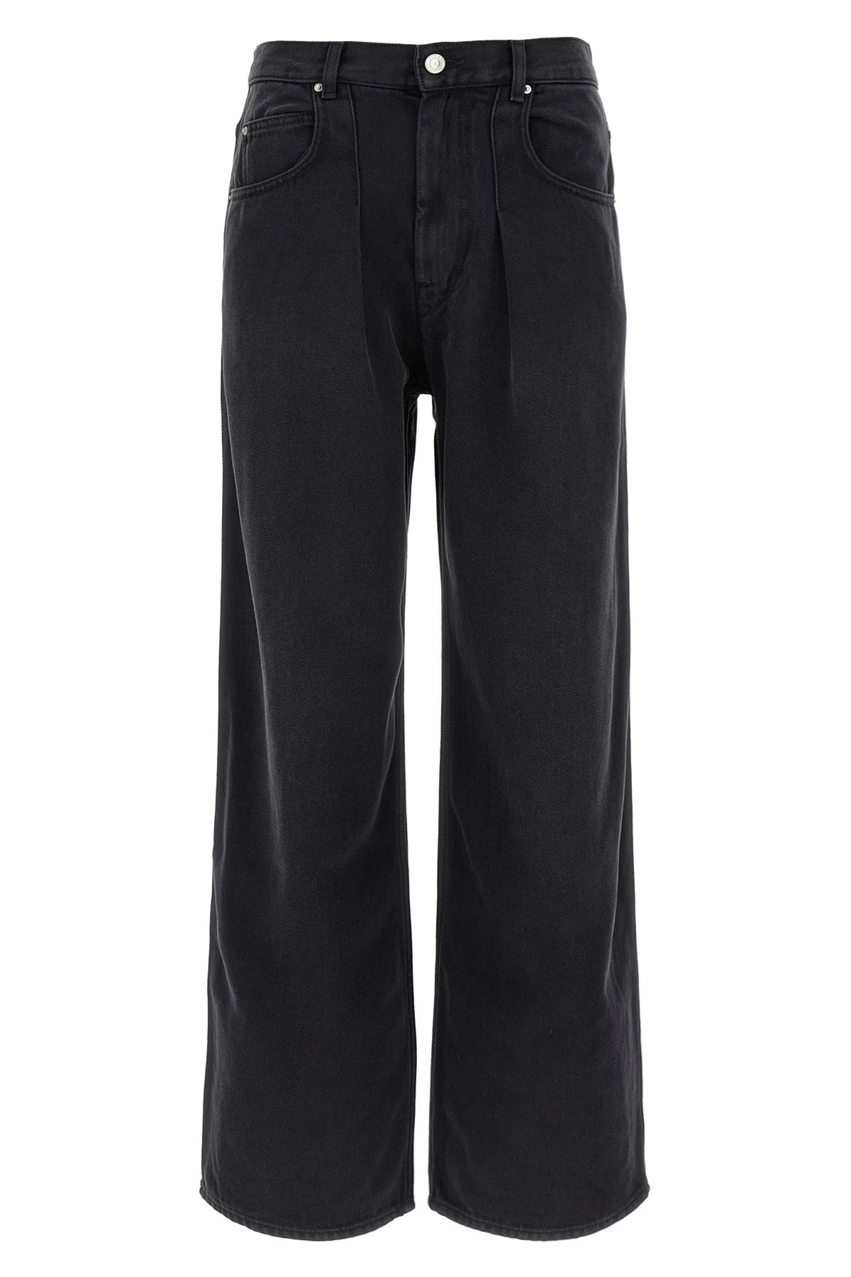 cod. PA0554FAB1H07I02FK 'Rodayna' jeans in garment-dyed cotton denim with pins, high waist, five pockets, front zip closure, wide leg, back logo tag. Color: Black Size & Fit: true to size fit - FRENCH size Composition: 77% lyocell 23% cotton Made in: Tunisia