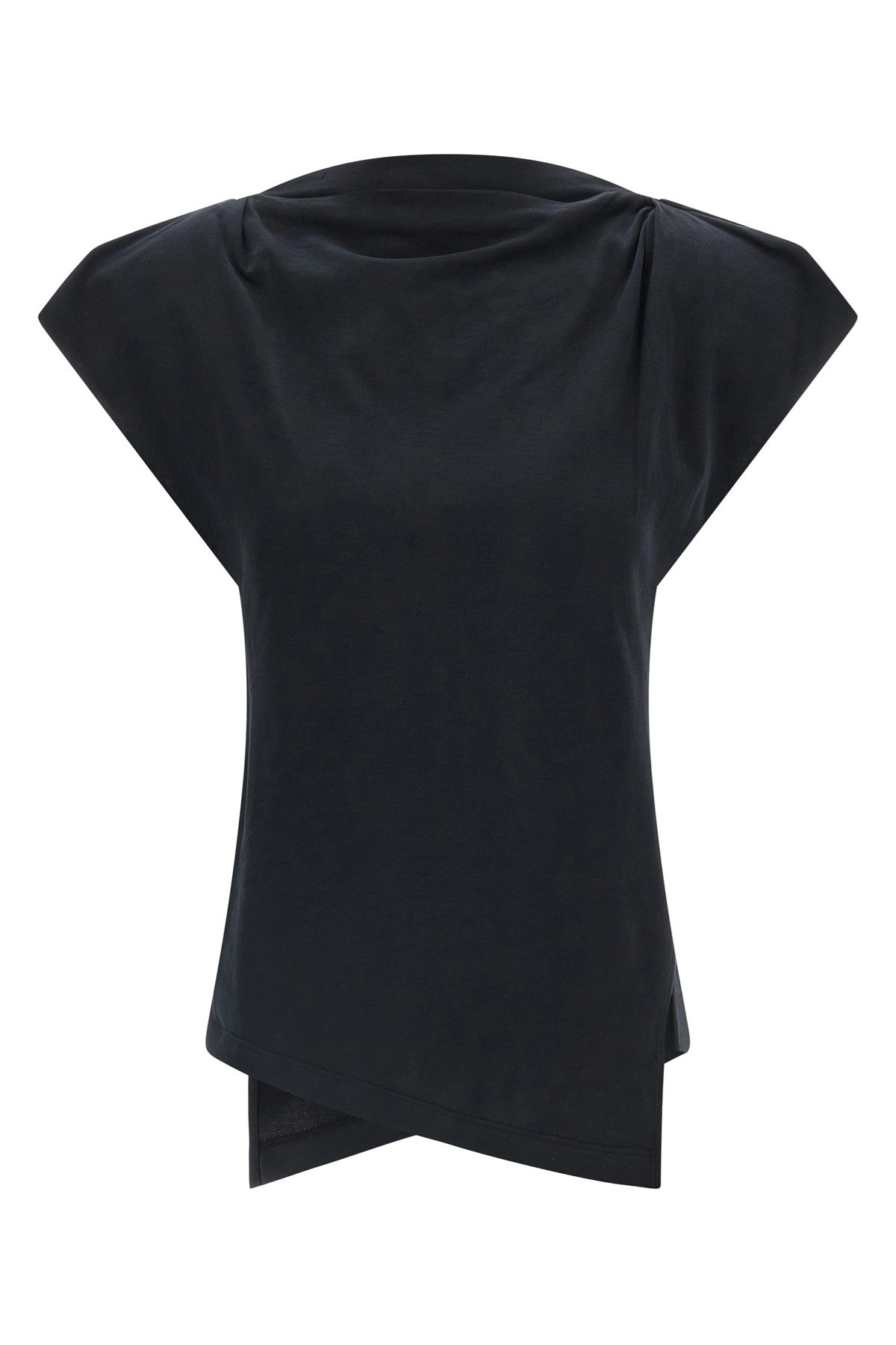 cod. TS0097FAA1N41I01BK 'Sebani' cotton t-shirt with asymmetric cut, boat neck, removable padded shoulders, short turned-up sleeves, side slits, asymmetrical hem. SUSTAINABLE: This product is made with organic cotton. Color: Black Size & Fit: true to size fit Composition: 100% cotton Made in: Portugal