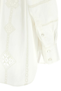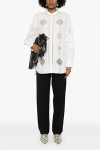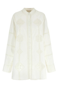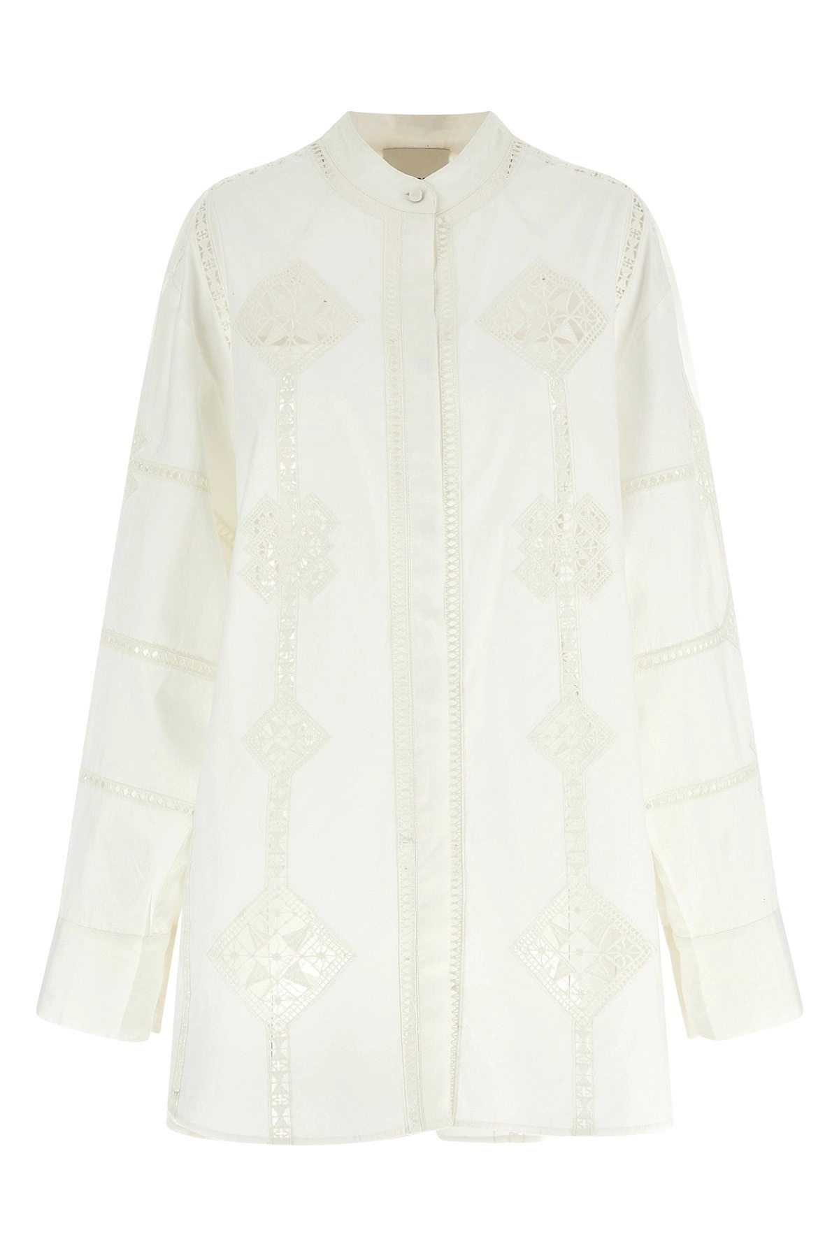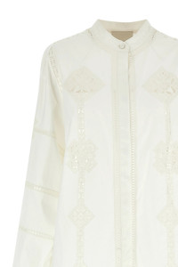 cod. CH0203FAC1J11I20WH 'Soeline' shirt in perforated cotton poplin with broderie anglaise details, crew neck, button closure, long sleeves with cuffs and dropped shoulders. Color: White Size & Fit: Comfort fit French size Composition: 100% cotton Made in: India