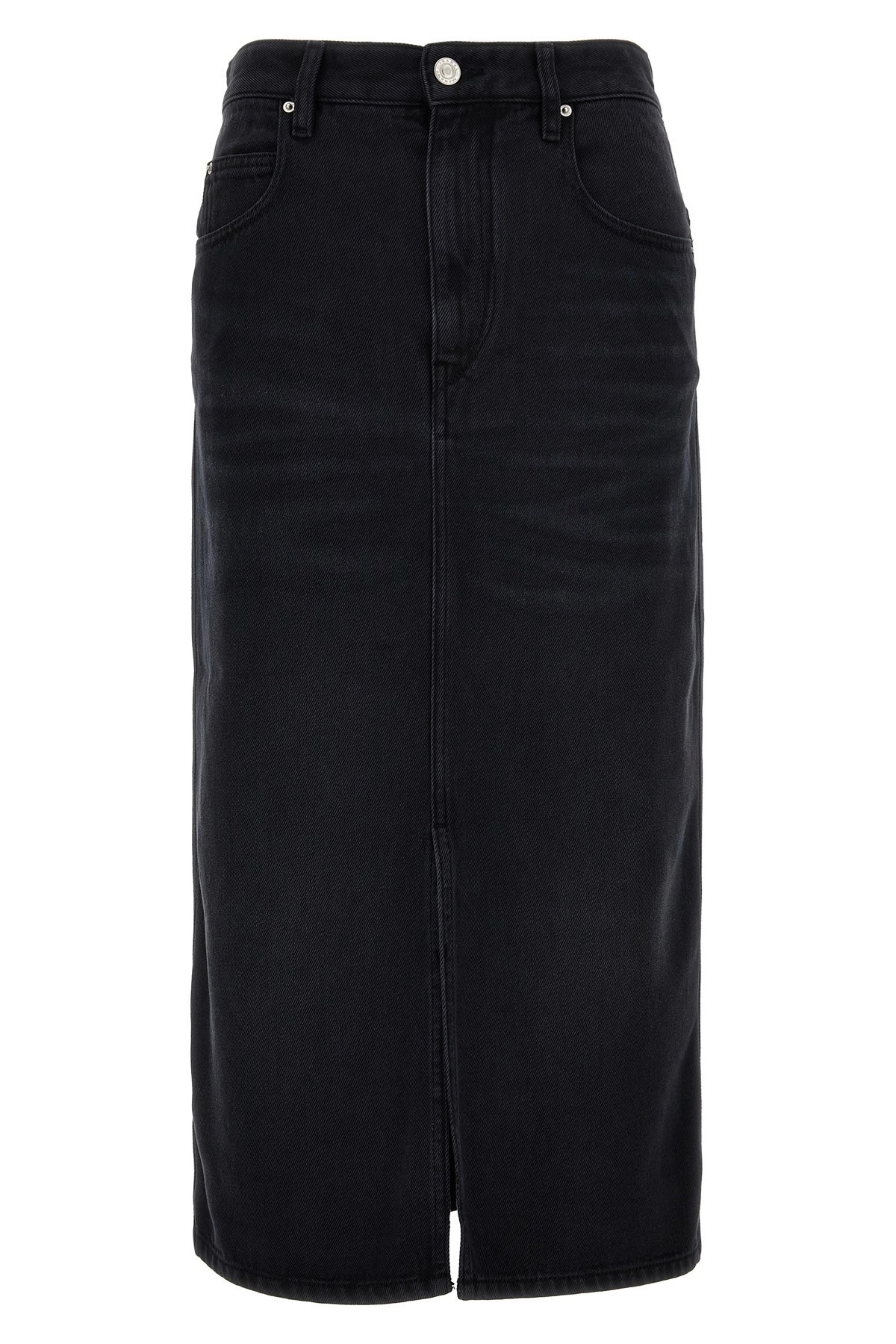 cod. JU0045FBB1H07I02FK 'Tilauria' denim skirt, zip and button closure, five pockets, leather logo tag, front split. Color: Black Size & Fit: true to size fit French size Composition: 77% lyocell 23% cotton Made in: Tunisia
