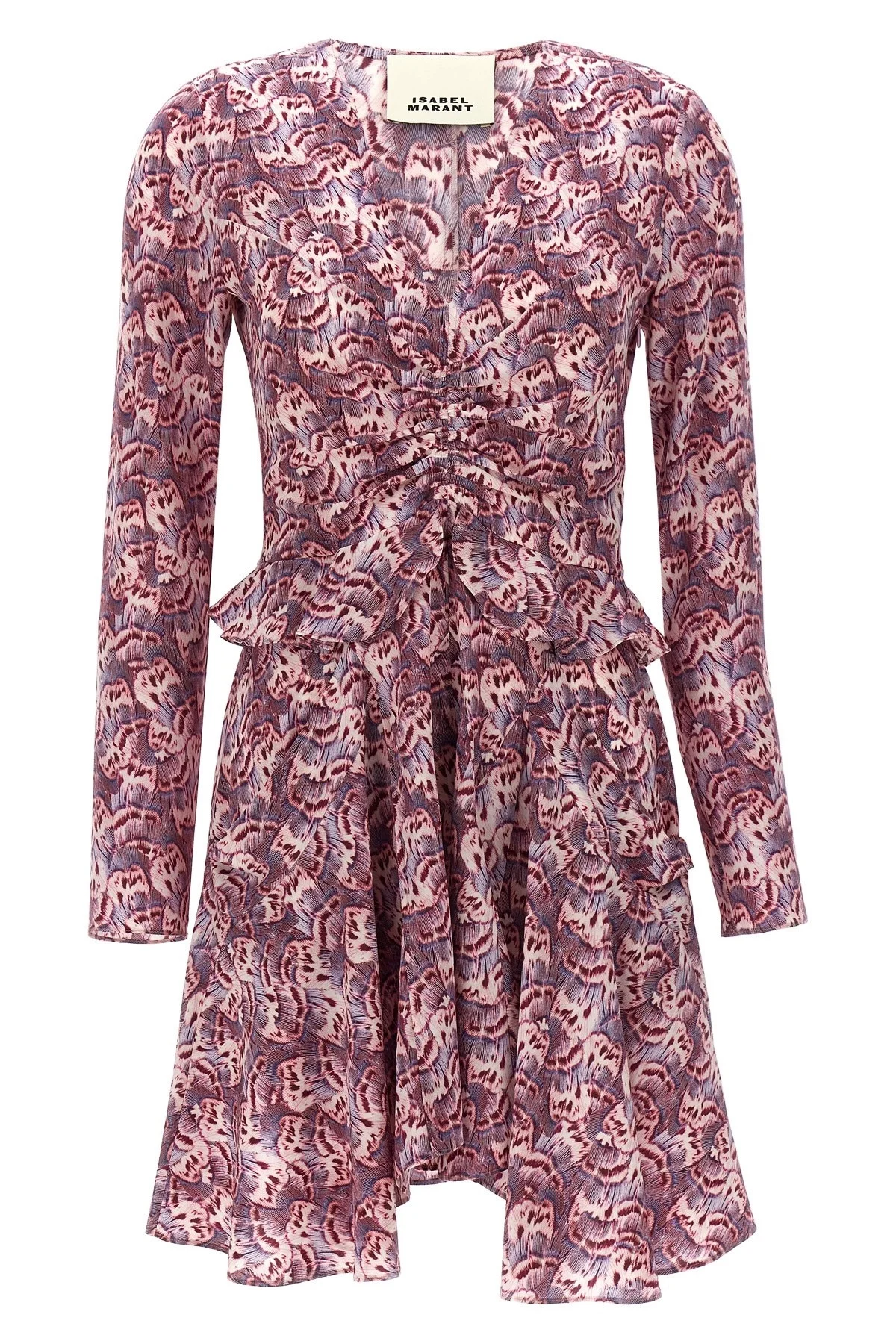 cod. 24PRO0247FBB1J04I86MA 'Usmara' dress in printed fabric, mini model with skirt with frappe, long sleeves, V-neck. Color: Multicolor Size & Fit: true to size fit French size Made in: Bulgaria