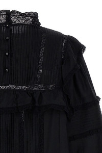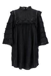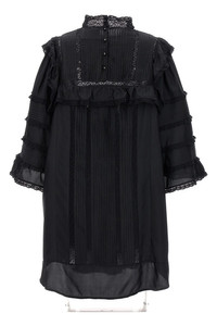 cod. 24PRO0425FAB1J10I01BK 'Zakae' mini dress with 3/4 sleeves, crew neck, plastron and pleated details with trimmings, side pockets. Color: Black Size & Fit: true to size fit French size Composition: 100% cotton Made in: India