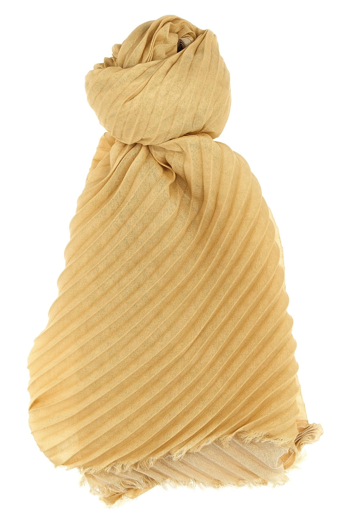 cod. IM48AD10540 'Double Pleats' pleated fabric stole, frayed at the edges. Color: Beige Size & Fit: One size Composition: 70% polyester 20% silk 10% wool Made in: Japan