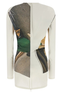 cod. IM58FJ02402 'Street View' cotton blend blouse, crew neck, front 'Street View' print, slightly dropped shoulder, long sleeves, narrower waist, back full zip with double slider. Color: White Size & Fit: True to size fit Composition: 43% polyamide 32% nylon 17% cotton 8% polyurethane Made in: Japan