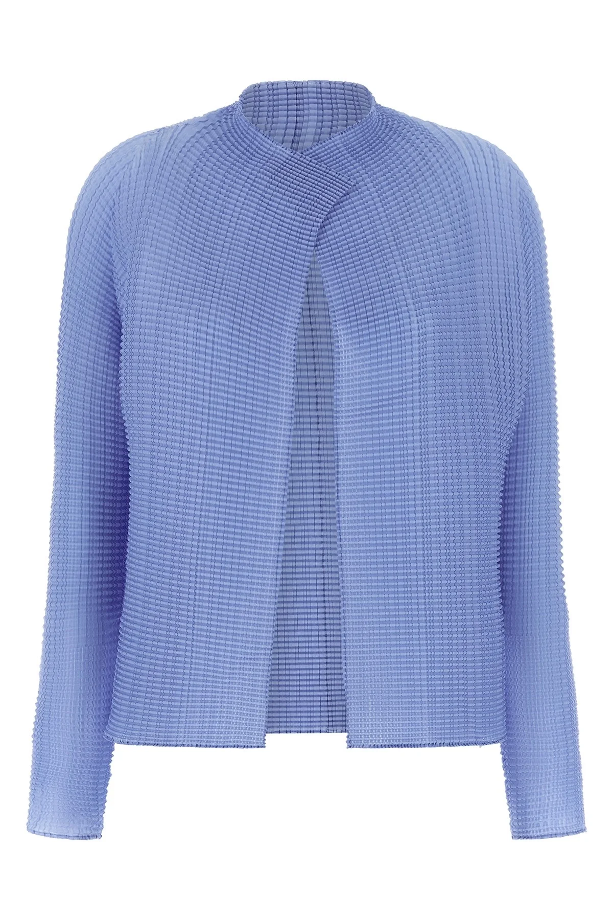 cod. IM66FJ67771 'Wooly Pleats-66' pleated cardigan with front opening, long sleeves. SUSTAINABLE: product made from recycled polyester. Color: Light Blue Size & Fit: true to size fit Composition: 100% polyester Made in: Philippines