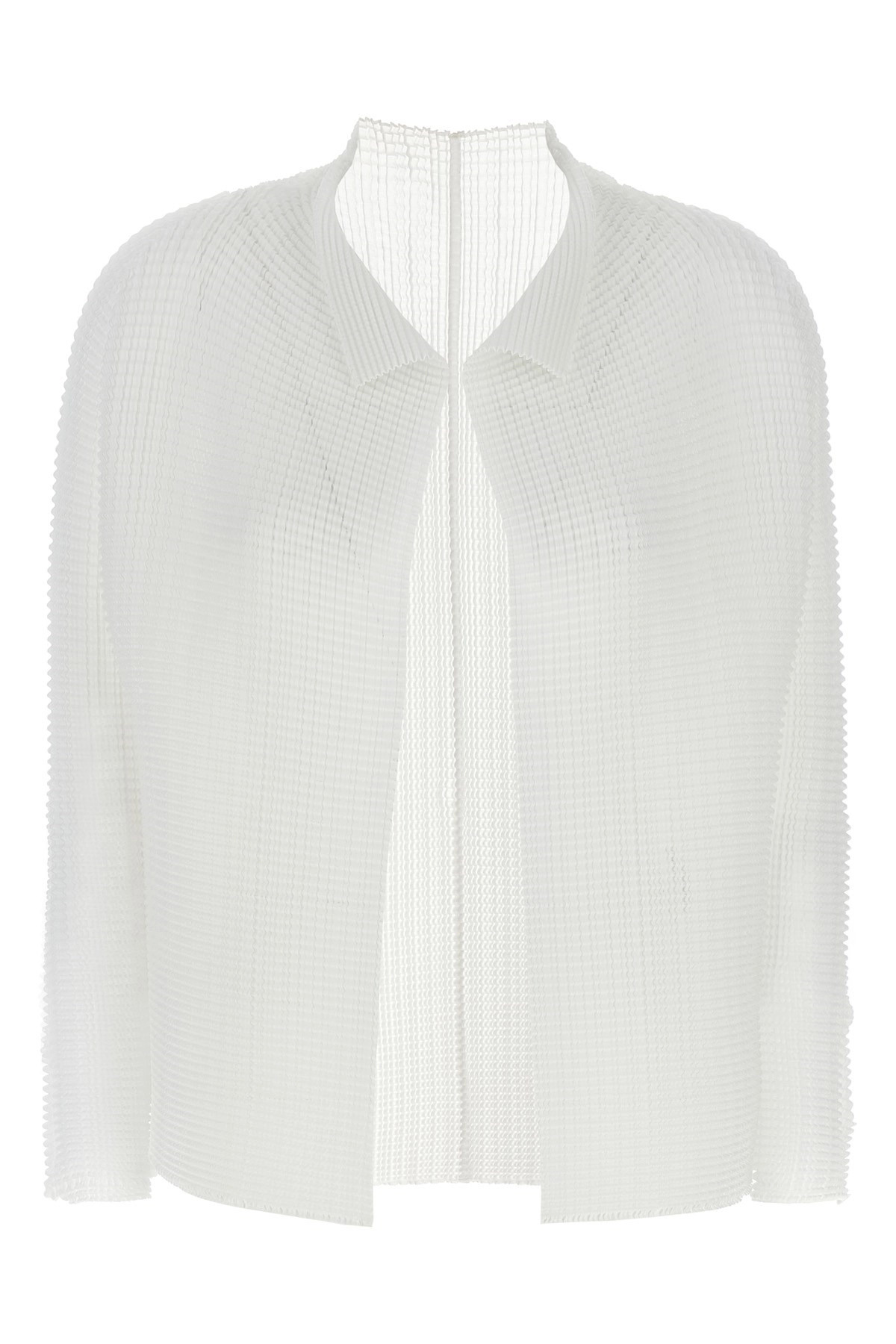 cod. IM58FJ40601 'Wooly Pleats' pleated cardigan with front opening, long sleeves. Color: White Size & Fit: True to size fit Composition: 100% polyester Made in: Philippines PROMO CODE NOT APPLICABLE