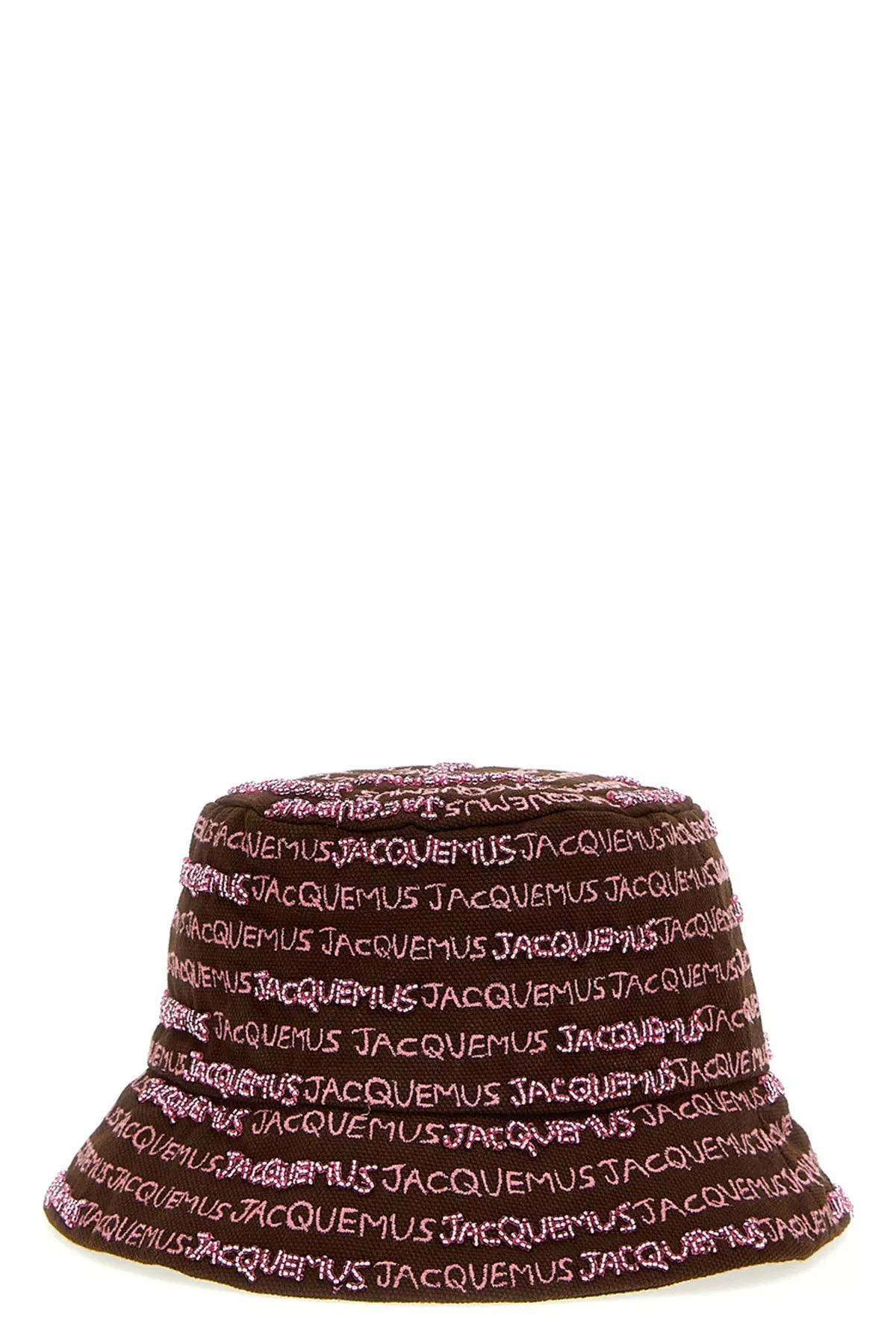 cod. 23E235AC451BROWN Le Bob Bordado' cotton canvas bucket hat with embroidery and an all-over logo beads. Color: Brown Material: 100% cotton
