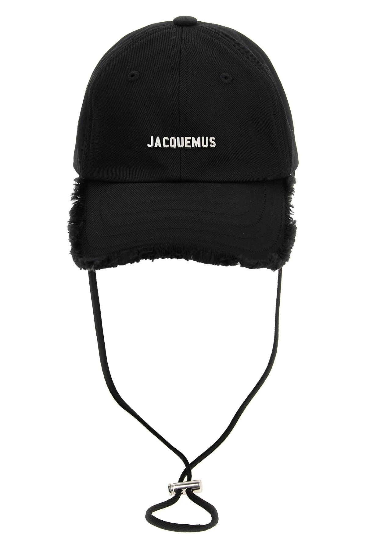 cod. 23EACU00452AW00092990 'La Casquette Artichaut' water-repellent canvas cap, front metal lettering logo, visor with fringes at the edges, adjustable back strap, drawstring under chin. Color: Black Size & Fit: true to size fit Composition: 100% cotton Made in: Bulgaria