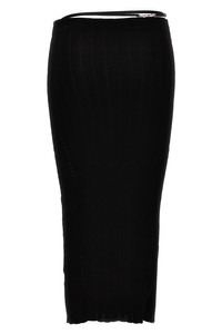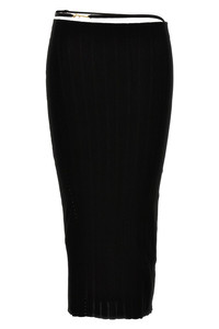 cod. 24E241KN3622358990 La jupe Pralù' high-waisted stretch viscose skirt with separate lingerie-style band with gold metal logo charm. Color: Black Size & Fit: true to size fit French size Composition: 94% viscose 6% polyester Made in: Romania