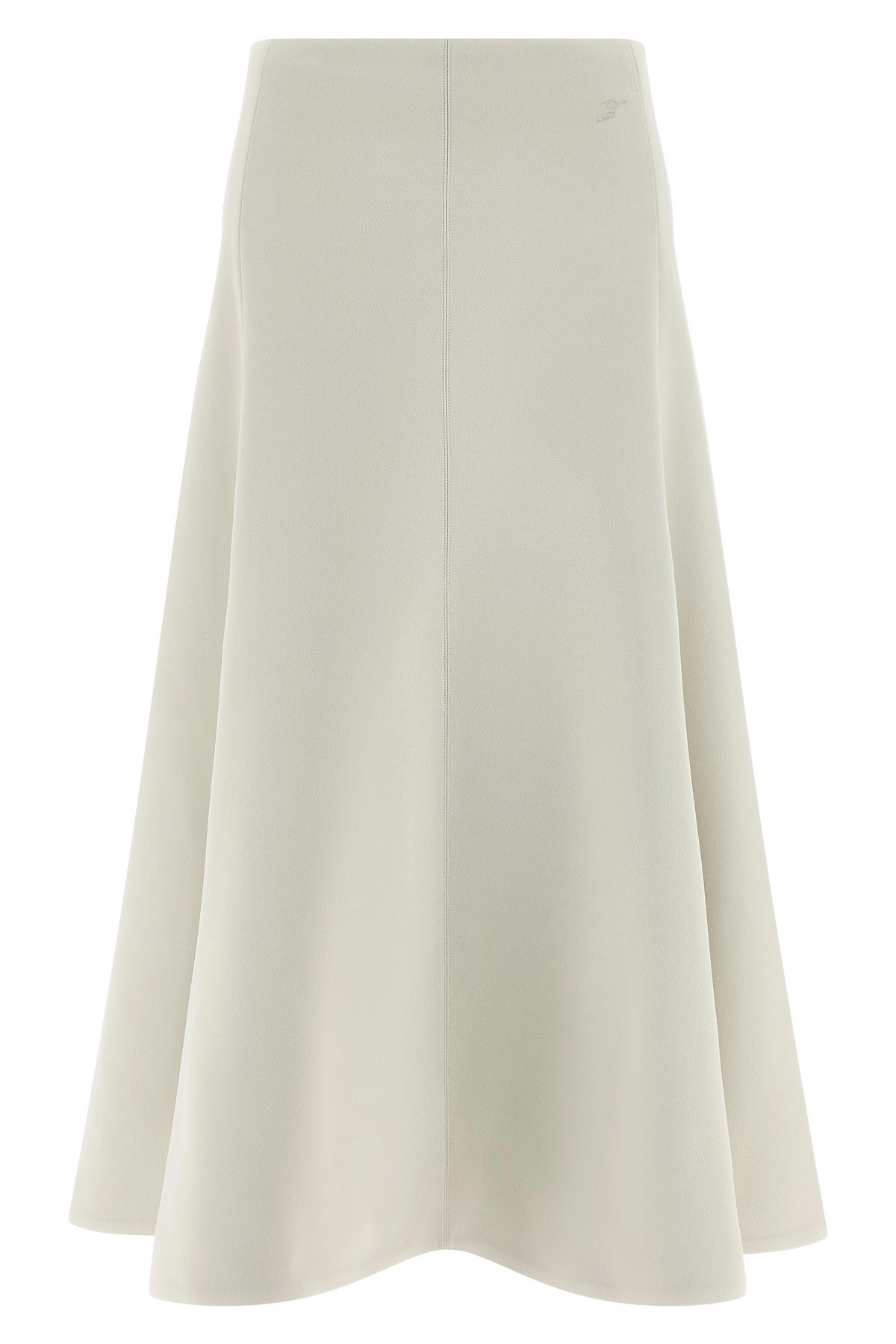 cod. 25HSKW00635AW00632110 'La Jupe Triangle' midi skirt with half-wheel style, front logo embroidery, side zip and hook closure. Color: White Size & Fit: True to size fit French sizing Composition: 70% polyester, 30% viscose Made in: France