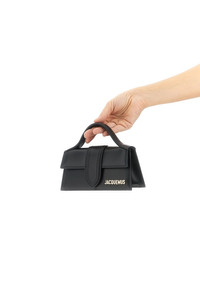 cod. 21HBAW00006BC01C01990 'Le Bambino' linen handbag, magnetic flap closure, front metal lettering logo, fixed handle, back pocket, adjustable and removable shoulder strap. Each leather is unique and has been carefully selected by a team of artisans. The model may have any imperfections or natural color variations. Color: Black Composition: 100% cow leather (Bos Taurus) Size&Fit: W 17.5 x H 9 x D 6 cm