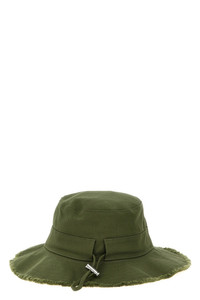 cod. 22HACU00002BW00092560 'Le Bob Artichaut' canvas bucket hat, fisherman's model, front metal lettering logo, fringes at the edges, back drawstring, underneck drawstring. Color: Green Size & Fit: true to size fit Composition: 100% cotton Made in: Bulgaria