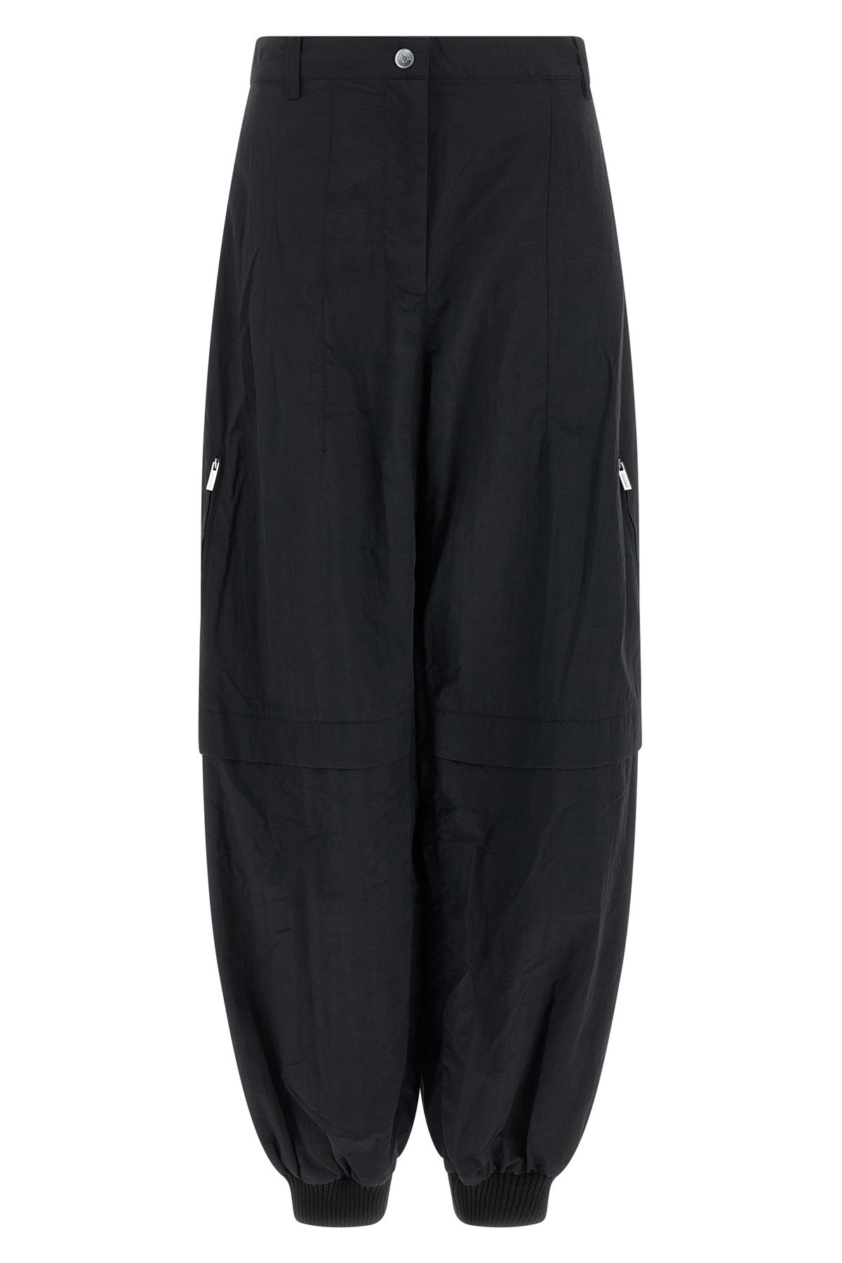 cod. 25HPAW00628AW00645990 'Le Cargo Ovalo' nylon pants, side pockets, zip and button closure, wide leg, elastic knit cuffs on the hem. Color: Black Size & Fit: True to size fit Composition: 96% polyamide 4% polyurethane Made in: France