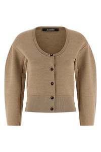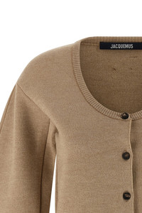 cod. 25HCDW00808AK00185015 Le Gilet Doppio' cardigan in heavy knit in merino wool blend, wide round neckline and front button closure, long sleeves with rounded design and dropped shoulders. Color: Beige Size & Fit: true to size fit - FRENCH size Composition: 90% merino wool 10% cachemire Made in: Portugal