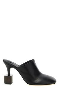 cod. 25E251FO1613073990 'Les Mules Bisou' smooth leather mules with rounded toe, heel with geometric wooden sculptures, leather sole. The wood used for the geometric sculptures of heels is a natural product, any signs and nuances are to be considered characteristics of uniqueness. Color: Black Size & Fit: EU WOMEN Heel: 9 cm Composition: 100% lamb leather (Ovis aries) Made in: Italy