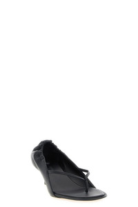 cod. 26EFOW00204AC27L26990 'Les Sandales Nu-Pieds B' nappa sandals in thong style, round toe, embossed logo on the side, elastic back, 'Rond-Carre' heel, lambskin insole and lining, asymmetrical woven heel, leather sole. Color: Black Size & Fit: EU WOMAN - Heels: 4.5 cm Composition: 100% lamb leather (Ovis aries) Made in: France