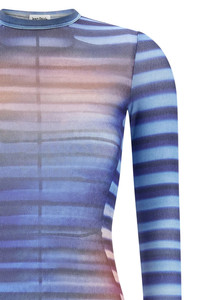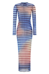 cod. 2503WDR030M005P565034 Long dress in stretch tulle with all-over 'Air' print, crew neck, long sleeves, raw cut hem. Color: Multicolor Size & Fit: Slim fit Composition: 100% polyamide Made in: Italy