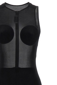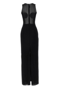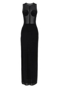 cod. 2534FRO372J08200 Long 'The Black Conical' tulle dress with semi-transparent upper part with conical detail on the breast, crew neck, zip closure and back split, underskirt. Color: Black Size & Fit: Slim fit Composition: 94% viscose 6% elastane Made in: Portugal