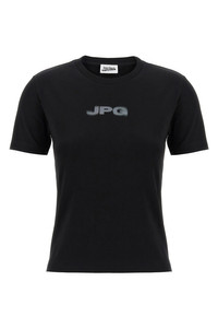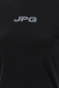 cod. 2503WTO300J0020004 'The Black JPG Baby Tee' cotton jersey T-shirt with front digital logo print, crew neck, short sleeves. SUSTAINABLE: This product is made of organic cotton. Color: Black Size & Fit: Slim fit Composition: 96% cotton, 4% elastane Made in: Portugal