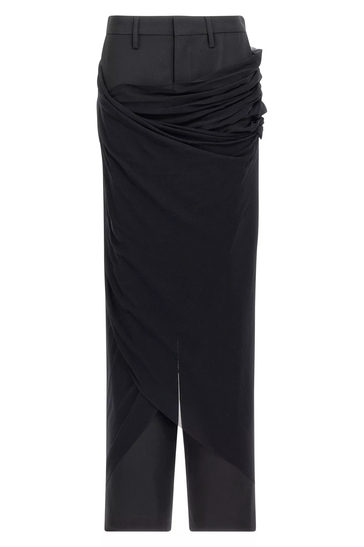 cod. 2534FPA189C08400 Wool trousers with front tulle draping detail, zip and hook closure, straight leg, high waist model, pockets. Color: Black Size & Fit: true to size fit French size Composition: 100% virgin wool Made in: Italy