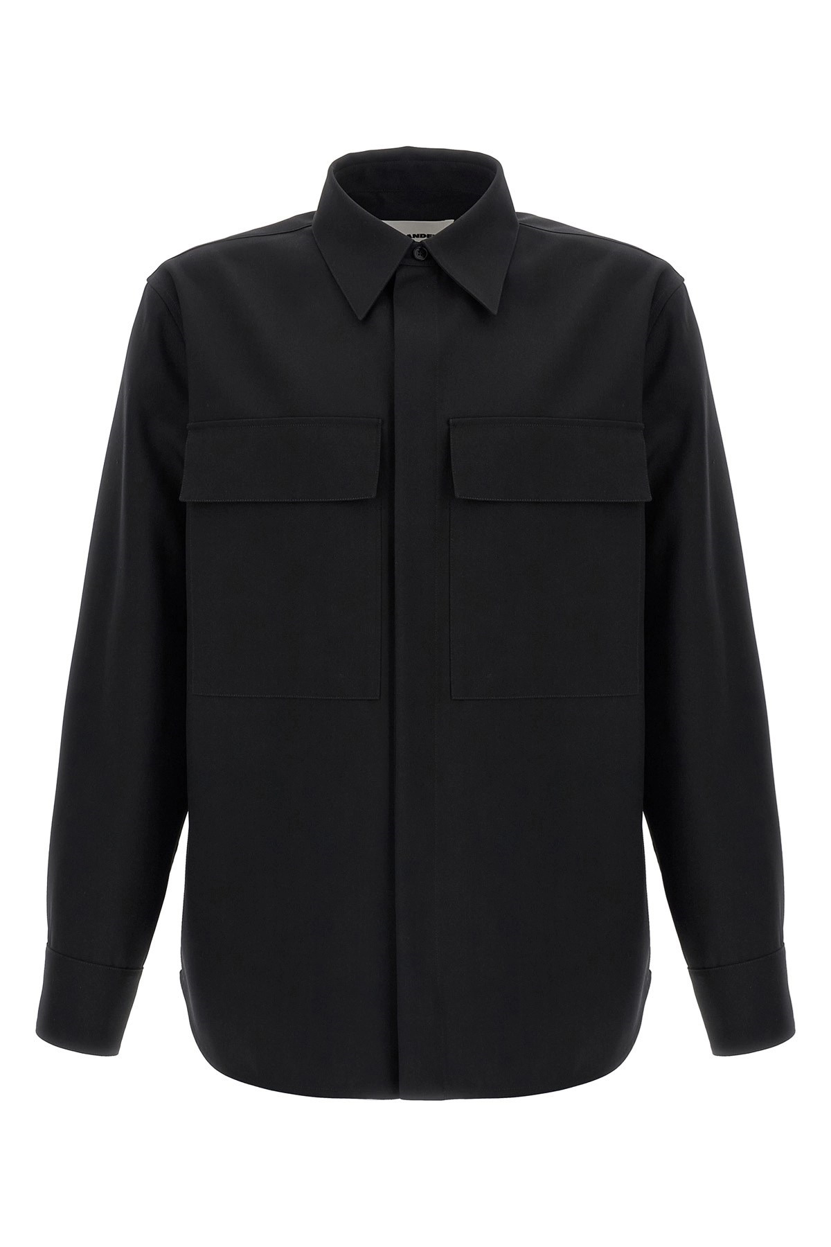cod. J23DL0104J40159001 '08' wool shirt with front button closure, pockets, long cuffed sleeves. Color: Black Size & Fit: true to size fit - COLLAR size Composition: 100% wool Made in: Italy