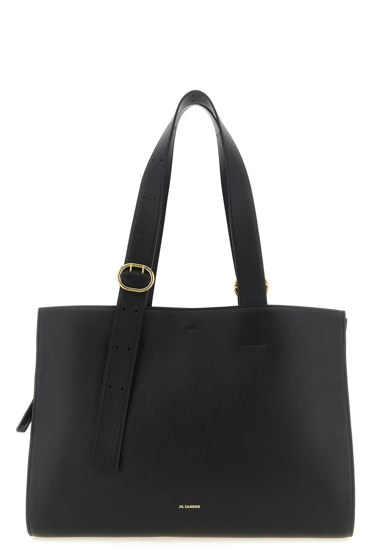 cod. J08WC0009P8931001 Leather shopping bag with front embossed logo, hook and inner zip closure, double adjustable handle with 'Cannolo' buckle, rigid base with metal feet, nappa lining. Color: Black Size & Fit: W 40 x H 29 x D 18 cm Composition: 100% calfskin leather (Bos Taurus) Made in: Italy