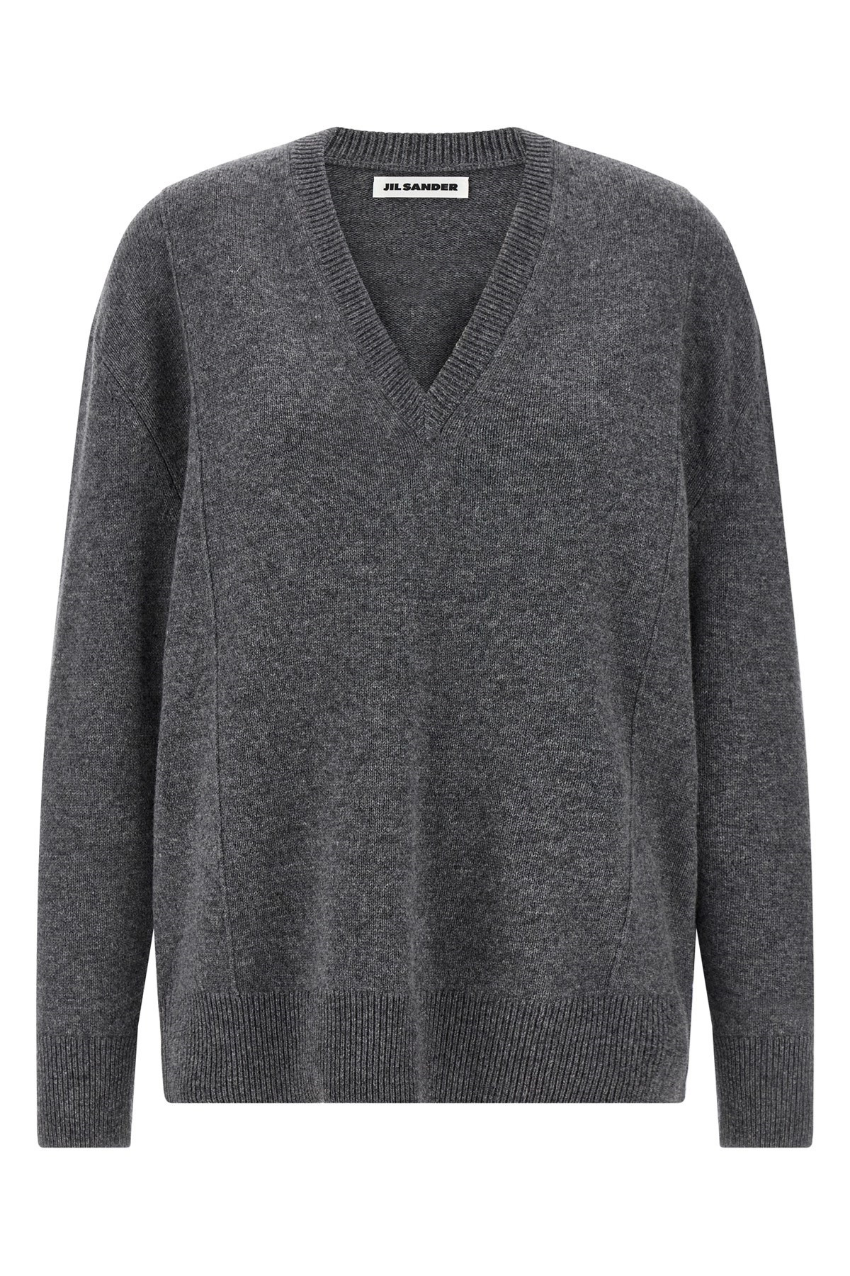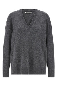 cod. J03GP0168J14818026 Cashmere blend sweater with V-neck, slightly wide dropped shoulder pattern, side stitching, long cuffed sleeves. Color: Gray Size & Fit: True to size fit German sizing Composition: 70% wool 30% cachemire Made in: Italy